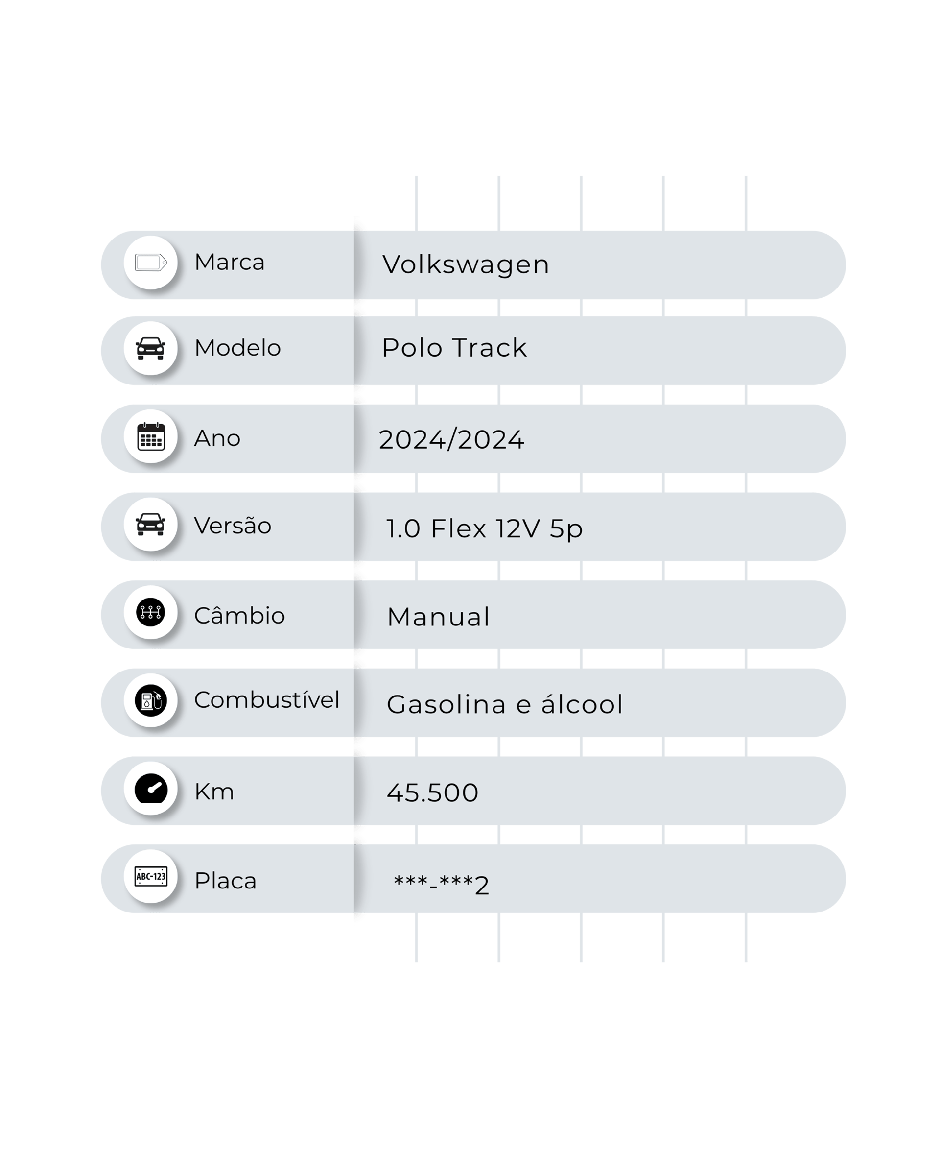 À procura de um VolksWagen Polo Track 1.0 Flex 12V 5p - Branco - 2024 seminovo? Aqui tem. Veículo periciado. 3 Meses de garantia. Ano: 2024/2024 KM: 45.500 km. Gostou deste carro? Temos uma equipe de atendimento on-line pronta para te atender.
